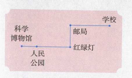 First, go straight from our school. Next, turn left at the post office. Go straight about five minutes. Then turn right at the traffic lights. Go down the street, we can find the People's Park on the left. Go straight, we can see the science museum.