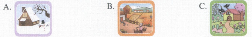 Ⅲ.Jack 热爱分享生活。听录音,根据 Jack 与好朋友的聊天内容选择合适的配图(每小题 2 分,共 10 分)