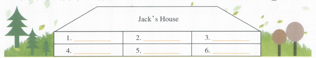 Ⅳ.Jack 正在介绍自己的房子。请你听一听,标出房间,争做“设计小专家”(每小题2分,共12分)