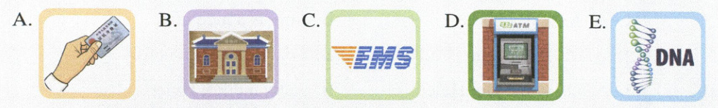 1.C;EMS 2.D;ATM 3.B;NMC 4.E;DNA 5.A;ID