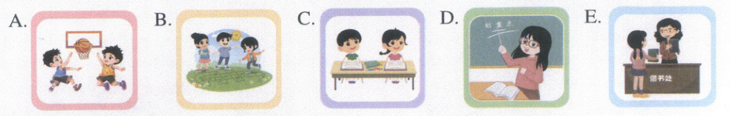 Ⅳ. Jack 正在向新同学介绍学校。听录音,选词填空(每小题2分,共10分)