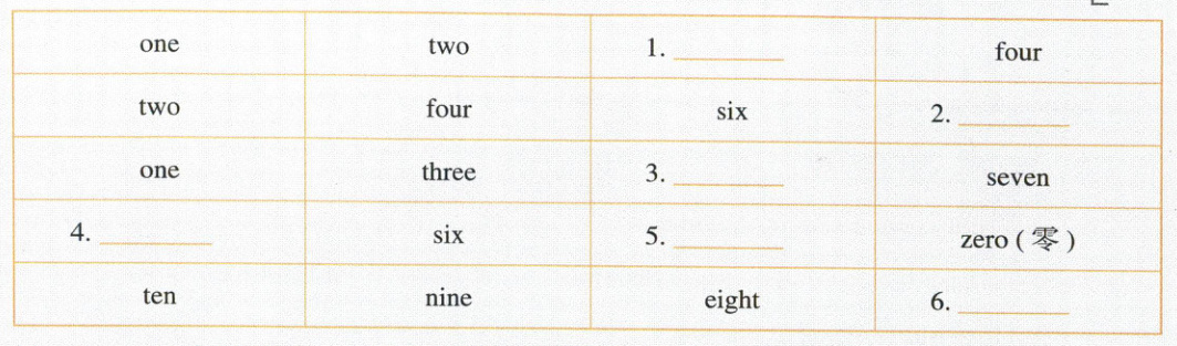 Ⅵ. Jack 正在玩“数字规律”的游戏。读一读,找出每一行数字的规律,填写恰当的单词(每小题 1 分,共 6 分)