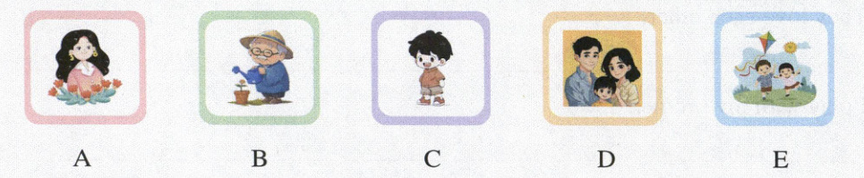 Ⅶ. 同学们在展示自己家人的照片。我们来把描述的句子和照片一一对应起来吧