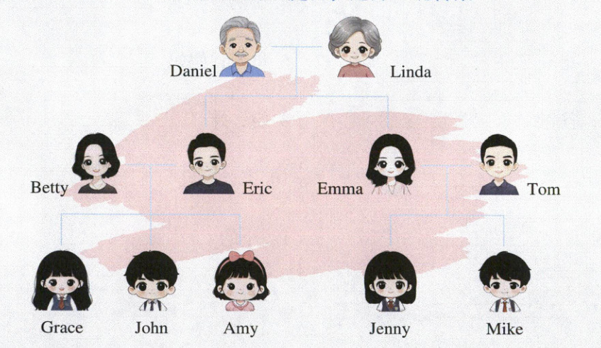 Ⅹ. 你会绘制家庭树吗?观察 John 的家庭树,选择正确答案
