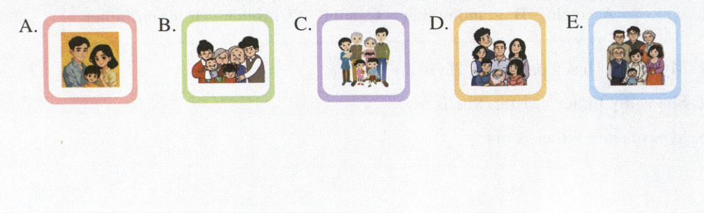 Ⅷ. 你在世界上很难找到两片相同的叶子,每个家庭的成员组成也不完全相同。读一读,选一选(只填序号)(每小题 2 分,共 10 分)