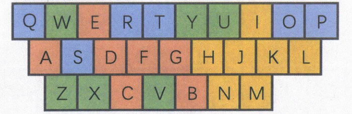 Ⅳ. 你会使用电脑吗?请圈出键盘上学过的字母,并按字母表顺序将它们的大小写形式写在四线三格上