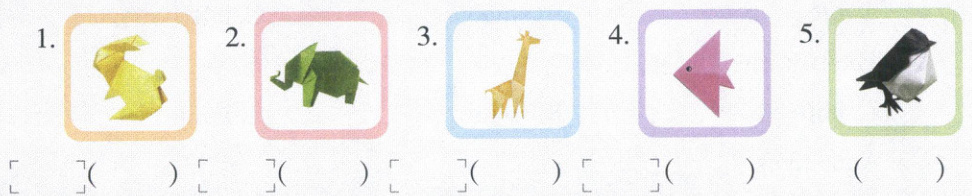 Ⅱ. 听 Jack 和同学们对自己的折纸动物的介绍,判断下列图片与所听内容是(T)否(F)相符(每小题 2 分,共 10 分)