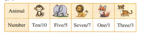 Ⅳ. Jack 和同学到动物园玩,他们正在数动物园的动物分别有多少。听录音,将动物的数量填写在对应的位置上(每空2分,共10分)