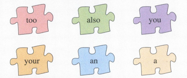 1. your 2. too 3. a; an 4. also 5. You