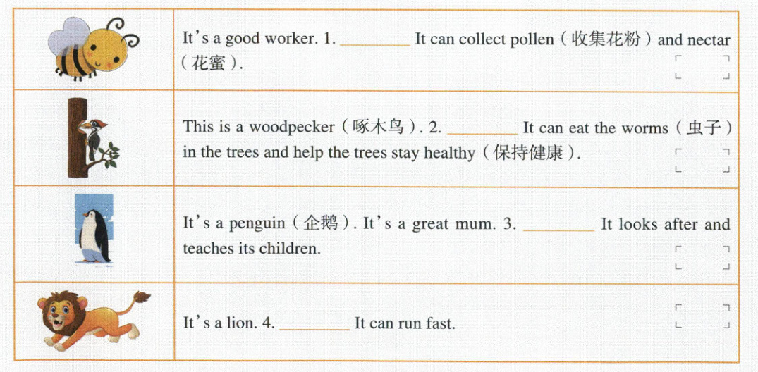 Ⅷ. Jack 了解到动物也有职业。读一读,选择合适的句子补全材料
