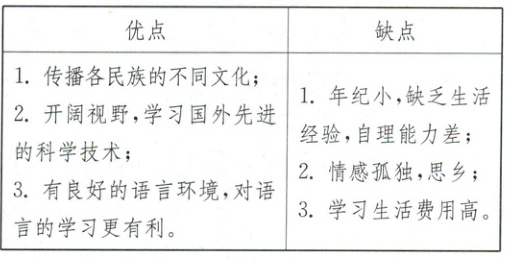However, there are some disadvantages. Most of the students are so young that they can't live by themselves without any living experience. Besides, being far away from their home country, they may feel lonely and homesick. Also, of course, the costs are much higher there than that at home.