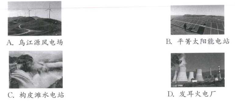D [解析]风力、水力、太阳能能够源源不断地从自然界获得,是可再生能源,风力发电、水力发电、太阳能发电都是利用可再生能源发电的,A、B、C不符合题意;火力发电利用煤进行发电,煤不能从自然界源源不断获得,是不可再生能源,则火力发电是利用不可再生能源发电的,D符合题意.故选D.