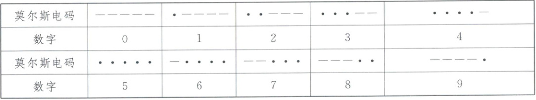 电磁波 01:00:00 $2.376× 10^{13}$ [解析]太空中是真空,声波不能在真空中传播,而电磁波可以,故科学探测得到的图像和数据是通过电磁波传递到地球的;对照表格信息,根据莫尔斯电码与数字的关系可推断出旅行者一号发出信号的时刻是01:00:00;由题知,地球收到信号的时刻是当日23:00:00,则电磁波传播的时间$t=23:00:00-01:00:00=22\ {h}$,由速度公式可得,旅行者一号距离地球的距离为$s=ct=3× 10^{8}\ {m/s}×22× 3600\ {s}=2.376× 10^{13}\ {m}$.