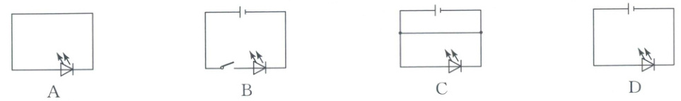 D [解析]由图可知,发光二极管直接连接到水果电池两端,D正确,A、B、C错误.故选D.思路引导 发光二极管具有单向导电性,由实物图分析电路的连接情况,从而做出选择.