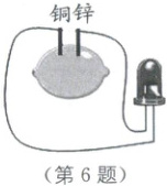 6. (2024·广西中考)如图所示是水果电池和发光二极管( $ \begin{array}{r} \mathbf{M} \\ \hline \end{array}\\ \hline $ )组成的电路.下列电路图与其对应的是(