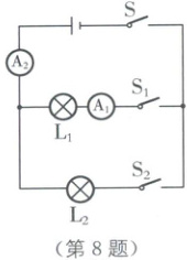 8. (2024·云南中考)如图所示的电路中,电源电压恒定,闭合开关 S、$ S_1 $ 和 $ S_2 $,灯 $ L_1 $、$ L_2 $ 都正常发光,下列说法正确的是(