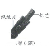 6. (2024·天津中考)如图所示的铝芯电缆是一种输电导线.在某村输电线路改造工程中,更换的铝芯电缆比旧铝芯电缆电阻更小,主要是因为新电缆的(