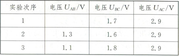 (3)用电压表分别测出电压Uab、Ubc和Uac,其中测Uab时,电压表的示数如图丙所示,示数为_________V.接着更换不同规格的灯泡并多次实验,数据记录如表所示.