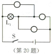 20. 如图所示,请把电流表或电压表或灯的符号填入“○”内,要求两只小灯泡组成串联电路.