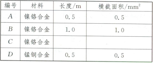 (3)选用编号为A、D的两根电阻丝进行实验,长度和横截面积相同,材料不同,可探究导体电阻大小与材料的关系.