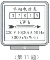 11. 小明家中安装的电能表如图所示,则他已经消耗的电能为