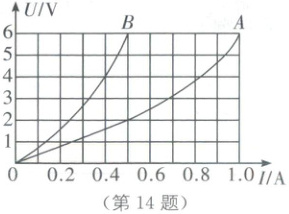 14. 图像分析法(2024·江苏南京秦淮区期末)A、B两只灯泡的额定电压均为6V,通过它们的电流随两端电压的变化关系如图所示.