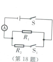 18. 如图所示的电路中电源电压恒定,$R_1$ 的阻值为 $20\Omega$,闭合开关 $S$,断开开关 $S_1$ 时,电流表的示数为 $0.3A$,若再闭合开关 $S_1$,电流表的示数为 $0.5A$,则电源电压是
