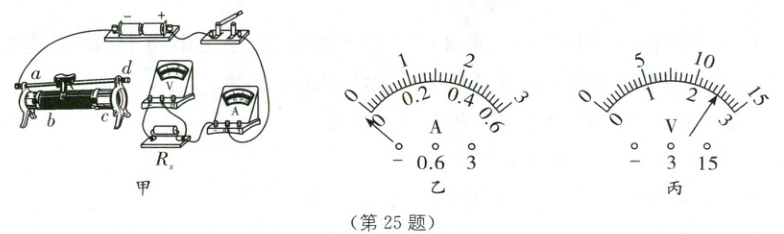 25. (4 分)中考新考法 误差分析 小组利用如图甲所示的电路测量未知电阻 $R_x$ 的阻值.
