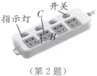 2. (2024·临沂经开区一模)如图所示是家庭常用的插线板,闭合开关,指示灯发光,且插孔可以提供工作电压,下列说法正确的是(