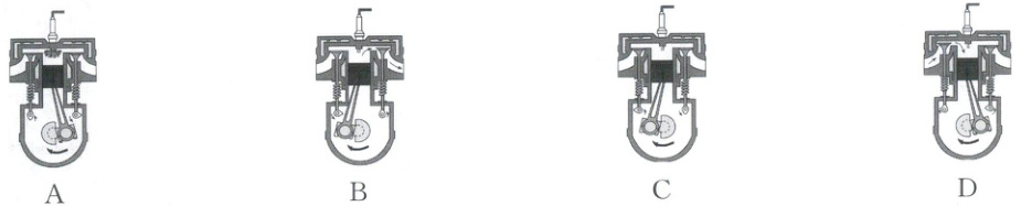 D [解析]吸气冲程中,汽油机吸入空气和汽油的混合气体,气体温度较低;压缩冲程中,活塞压缩汽油与空气形成的燃料混合物,活塞对气体做功,将机械能转化为气体的内能,使气缸内气体内能增加;做功冲程中,高温高压气体对活塞做功,内能转化为机械能;排气冲程中,将气缸内的废气排出.相比而言,吸气冲程中的气体温度较低,内能最小.故D正确.故选D.