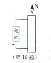 19. (2024·天津和平区期末)如图所示,一个通电螺线管,绕线未画出,为了防止短路,绕线具有一定的电阻。已知一个可自由转动的小磁针放在该通电螺线管的一端最终静止时状态如图所示,图中“N”是小磁针的极性。要求: