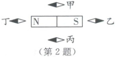 2. (2024·天津武清区期末)如图所示,一条形磁体周围放着能自由转动的小磁针甲、乙、丙、丁,这四根小磁针静止时 N 极指向正确的是(小磁针的黑端表示 N 极)(