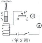 3. (2024·东台模拟)如图所示,在电磁铁的正上方用弹簧悬挂一条形磁体,闭合开关后,将滑动变阻器的滑片 P 从 a 端移到 b 端的过程中,下列判断正确的是(