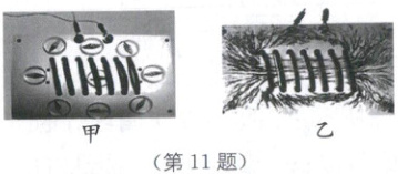 (2) 如图乙所示,将通电螺线管周围均匀撒上一层铁屑,轻轻敲击玻璃板,观察铁屑的分布情况. 铁屑在磁场中被