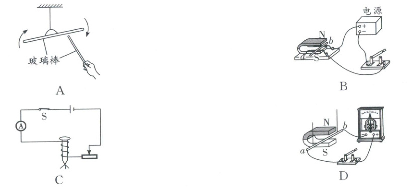 7. 当带着智能“运动手环”走路时,其内部绕着线圈的磁体在管内运动,线圈中便会产生电流,液晶屏就会显示运动的步数,下列选项中能说明其工作原理的是(