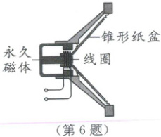 6. 如图所示是扬声器的结构示意图. 当扬声器的线圈中通入携带声音信息、时刻变化的电流时,线圈会在永久磁体的作用下受到力的作用并带动纸盆振动发声. 下列选项与扬声器工作原理相同的是(