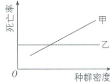 D [解析]流行性传染病的传播和影响与种群密度密切相关,种群密度越大,传染病越容易传播,导致死亡率升高,分析题图可知,甲因素可能是流行性传染病,A正确;乙因素对种群死亡率的影响不随种群密度的变化而变化,符合非密度制约因素的特点,B正确;从题图中可知,随着种群密度增大,甲因素导致的死亡率升高,即甲因素对种群的制约作用增强,C正确;乙因素属于非密度制约因素,反馈调节机制一般与密度制约因素对种群数量的调节有关,D错误。