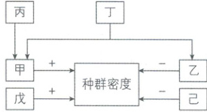 C 【解析】分析题图可知,甲、戊使种群密度增加,为出生率、迁入率,则乙、己为死亡率、迁出率。甲和乙均受丁的影响,则丁为年龄结构,甲为出生率,乙为死亡率,丙为性别比例,综上可知,A错误;丙为性别比例,通过影响出生率来间接影响种群密度,B错误;丁为年龄结构,有增长型、稳定型和衰退型三种,每种类型中都包括老年、成年和幼年三个年龄期,C正确;种群密度是种群最基本的数量特征,种群密度的大小取决于出生率和死亡率、迁入率和迁出率,因此种群密度不一定会随着种群出生率的增大而增大,D错误。