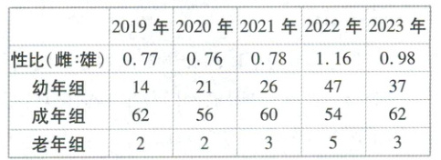 A 【解析】花鼠取食偏好红松球果,且花鼠具有分散贮食和遗忘贮食点的特性,故花鼠能促进红松种子的传播,A合理;结合对红松林中花鼠种群数量和红松结实量的调查结果可知,2023年花鼠种群数量为102只(更接近于2022年的106只),2019年花鼠种群数量为78只,而2023年与2019年的红松结实量没有显著差异(与2022年的红松结实量存在显著差异),故红松结实量不受花鼠种群数量的调控,B不合理;从表中可以看出花鼠雌雄比例高,花鼠的种群数量较高,种群数量波动与其性比之间有关联,C不合理;从年龄结构分析,题述花鼠种群不属于衰退型,因为老年组的个体所占比例最低,D不合理。