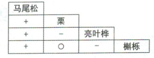 。(3)人为干扰过程中,各物种在群落中的优势和种间关系会逐渐变化。由此,科研小组进一步对轻度干扰下乔木层优势种的种间关联性进行了分析(表2),结果表明亮叶桦与两个物种(栗和槲栎)对生存环境与资源利用具有