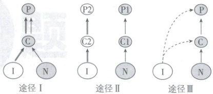 注:P、C表示不同级别的消费者;N表示土著植物;I表示入侵植物;↑基于入侵植物的营养流动;↑基于土著植物的营养流动;↑非营养作用