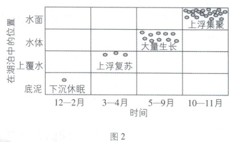 )A.结合图2分析,可在12—2月清除底泥、3—4月在上覆水位置打捞蓝细菌,5—11月设置生态浮床与蓝细菌竞争水体有机物以防治水华