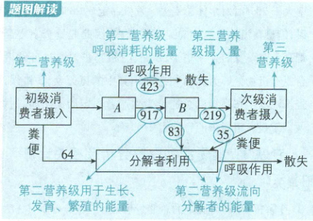 B.第二营养级的同化量中用于生长、发育、繁殖的能量为$917J/(cm^{2}\cdot a)$