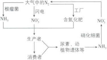 (3)种植豆科植物时,一般不需要施加氮肥,原因是豆科植物能与根瘤菌形成