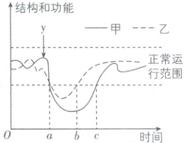 6. [黑龙江大庆实验中学 2025 高二期末]两个不同的生态系统在同时受到同等强度的干扰(y)后,其结构和功能的曲线变化情况如图所示。由图不能得出的结论是( )