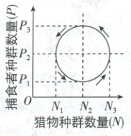 4.C 【解析】据题图分析,猎物的种群数量由N₂增加到N₃时,捕食者种群数量由P₁增加到P₂,之后捕食者种群数量继续由P₂增加到P₃,猎物种群数量由N₃减少到N₂,再之后,猎物种群数量继续减少,捕食者种群数量也开始减少,这种变化趋势反映了生态系统中普遍存在的负反馈调节机制,该模型能解释猎物和捕食者种群数量保持相对稳定的机理,A、B正确;由题图可知,猎物种群数量以N₂为中心在N₁和N₃之间波动,捕食者种群数量以P₂为中心,在P₁和P₃之间波动,故该模型中最可能代表猎物、捕食者种群K值的分别为N₂和P₂,C错误;捕食者与猎物的相互关系是经过长期的协同进化形成的,D正确。