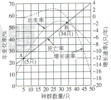 )A.种群数量从 A 到 B 的过程中,种群年龄结构为稳定型