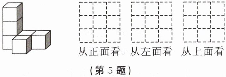 5. 如图所示的是由 6 个大小相同的小立方体搭成的几何体,其中每个小正方体的棱长为 1 cm.