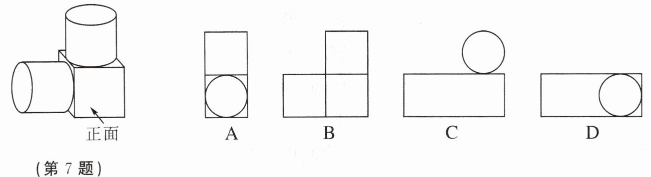 7. 我国古代数学家利用“牟合方盖”找到了球体积的计算方法.“牟合方盖”是由两个圆柱分别从纵横两个方向嵌入一个正方体时两圆柱公共部分形成的几何体.如图所示的几何体是可以形成“牟合方盖”的一种模型,则从正面看它的形状图是(