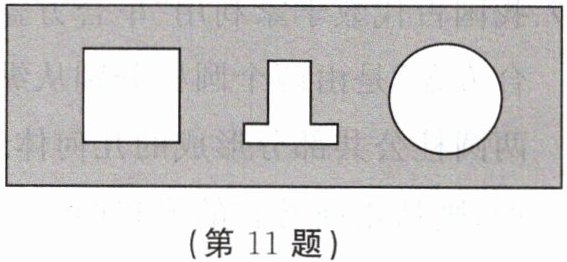 11. 制作一个有趣的三用塞子:如图,木板上有三个孔,孔的形状分别是正方形、倒“T”形和圆形,怎样制作一个有趣的三用塞子,使得这个塞子能够堵住每一个孔?